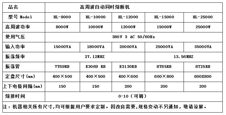 三、高周波同步熔接機(jī)技術(shù)參數(shù):