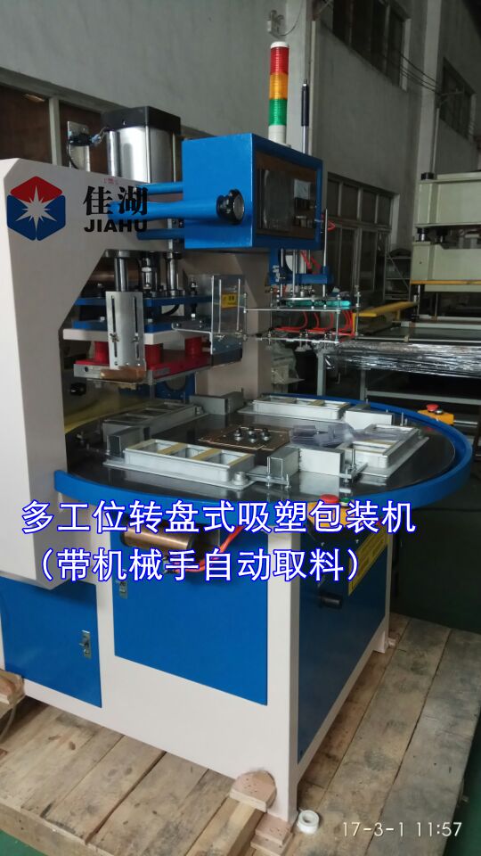 一、主要用途: 多工位自動轉盤高頻機:主要用于PVC、PET、PETG.TPU.PU和各種聚氯乙烯含20%(PVC)為主的塑膠焊接。雙吸塑封邊包裝,吸塑與紙卡熱合、折盒.五金工具、LED節能燈,牙刷、文具.化妝品.三明治吸塑包裝等。