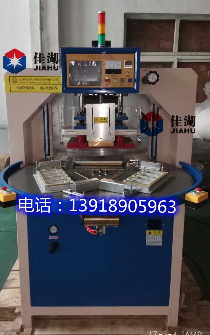 二、自動轉(zhuǎn)盤式高頻機特點: 1、多工位自動轉(zhuǎn)盤式高頻機有3~8工位,有標準型和PLC微電腦控制,多款機械根據(jù)客戶需求選擇供率大小,可根據(jù)客戶要求加裝熔斷功能,臺面大小,熔接次數(shù),工位數(shù)選擇,自動放料系統(tǒng)和自動機械手自動取料等。 2、自動轉(zhuǎn)盤循環(huán)工作程序,采用分隔器和電機控制,工作穩(wěn)定。 3、本機裝有高周回路,高周波輸出電力大,能使制品熔接,提高了生產(chǎn)產(chǎn)量。機器設有高周波頻率穩(wěn)定器,以及高周波屏蔽裝置。將高頻干擾減少,避免電波干擾。使模具和物料損壞減少。