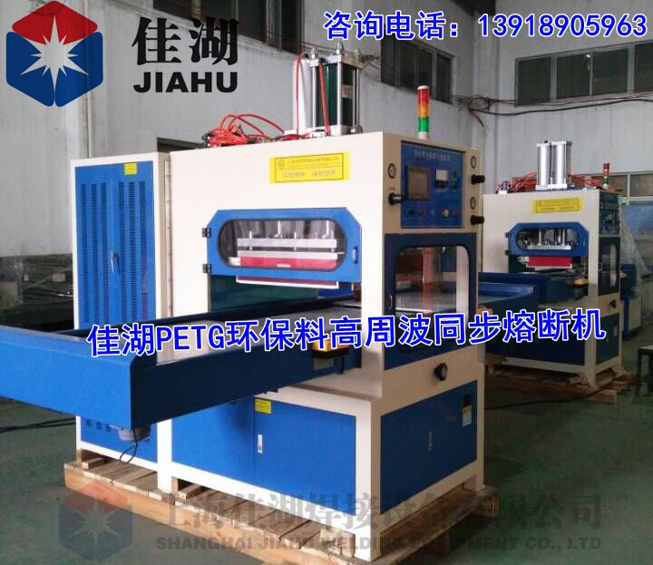 高周波自動同步熔接機,高周波熔斷機的工作原理是利用高周波先熔接再通過機器配有的壓力裝置同時切斷。因為是同時完成,所以稱為高周波同步熔斷機。也稱為高周波熔斷機.高周波同步裁斷機。主要適用于PET、PETG、GAG環保材質的雙面吸塑泡殼的封口包裝、吸塑紙卡包裝、牙刷封口包裝,以及EVA等布類皮革、真皮、PU、表帶、吊帶、熱水袋、皮具、錢包,護照包,腰帶,皮具禮品、皮具套、箱包、手機皮套、平板電腦皮套、公文包、旅行包、手提包、電腦包、保暖袋等需要熔接又要同步熔斷的產品。