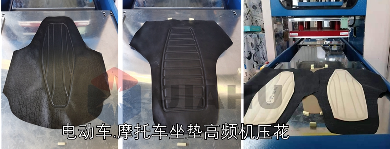 坐墊壓花機(jī)選用自動(dòng)滑臺(tái)高頻機(jī)主要用于: 座椅坐墊熔接壓花,汽車坐墊壓花、電動(dòng)坐墊壓花機(jī)、PVC充氣坐墊靠墊壓花, 皮革壓花、皮革凹凸壓花、服裝壓花、羽絨服壓花、植絨面料凹凸壓花,皮具壓字母、塑膠充氣制品包括充氣玩具、汽車腳墊、各類腳墊、坐墊壓花、鞋類制品中的壓花,壓防墊,地毯各種凹凸形狀的花紋圖案、字母文字的壓制。