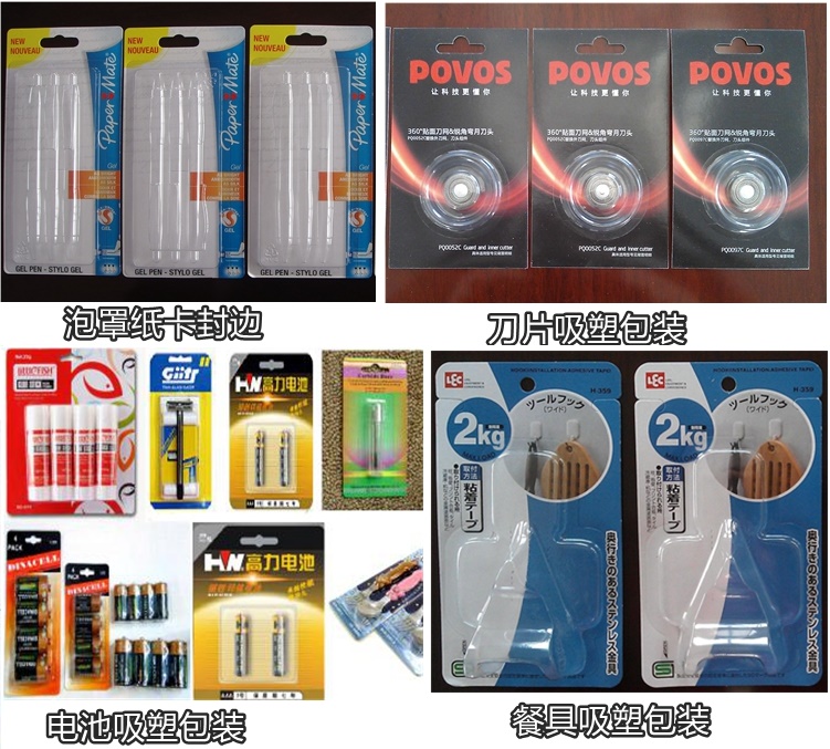 吸塑包裝機(jī)用于各種玩具、文具、電池、日用品、五金工具的吸塑封口包裝