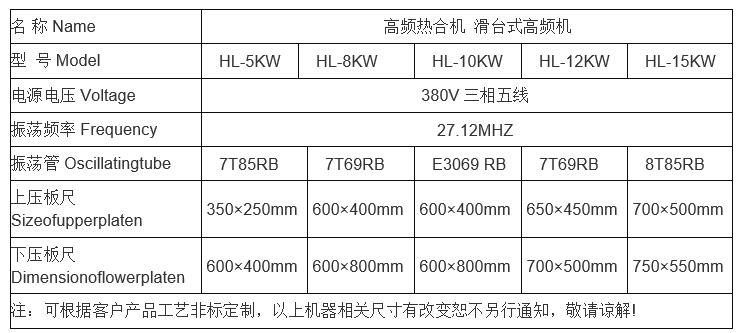 四、高頻熱合機(jī)規(guī)格參數(shù):