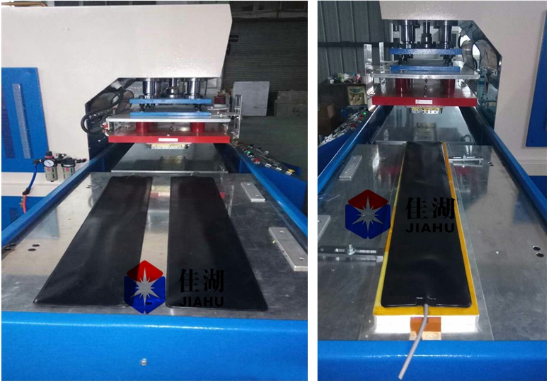 3、塑膠用品行業(yè):汽車地毯壓花、軟膜天花焊接、模結(jié)構(gòu)焊接、PVC帆布熱合、PVC卷簾門焊接PVC門墊焊接、PVC噴絲地墊壓花壓邊、PVC帳篷焊接、銀幕熱合、PVC投影布焊接、工業(yè)皮帶焊接;