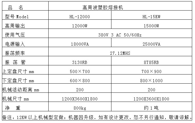 三、汽車內(nèi)飾件高周波熔接機技術(shù)參數(shù):