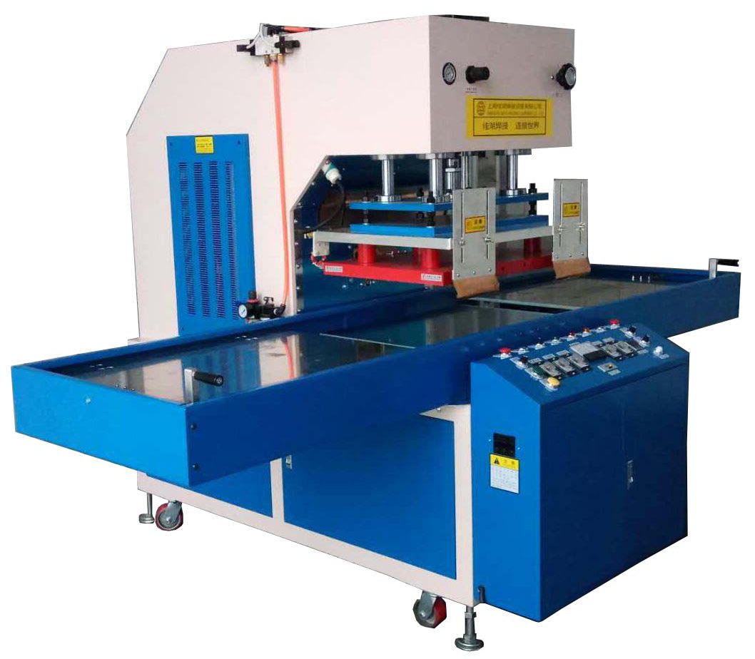 高周波塑膠熔接機利用電磁波滲透加熱原理使塑料分子發生極性化分子變化加上壓力配合相應的高周波模具就可以達到熔接目的,應用在塑料包裝領域,皮革布料壓花領域。