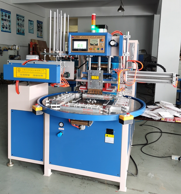 6、自動轉盤高頻機4-6工位可選擇,可根據客戶生產量的需求可加裝輸送帶,形成流水線生產。