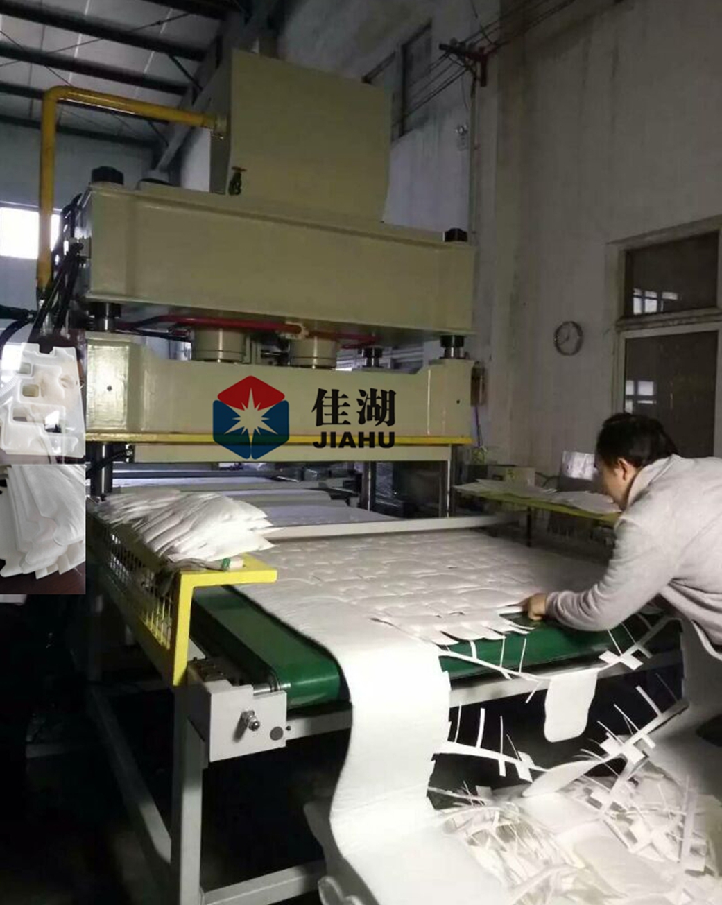 本機器是吸音棉成型裁斷的理想設(shè)備;能滿足吸音棉的壓制成型;汽車隔熱墊,隔音氈等產(chǎn)品的冷熱成型裁切生產(chǎn)。
