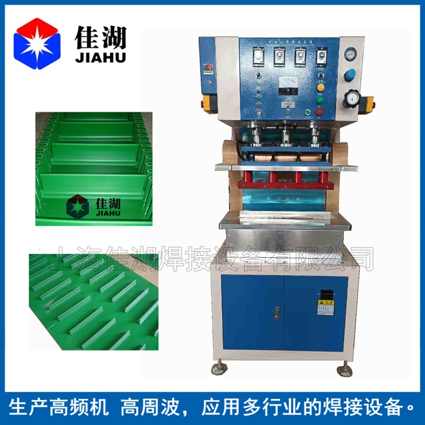 PVC工業(yè)皮帶高頻機、輸送帶高頻機、跑步機帶高頻焊接用于聚氯乙烯(PVC)、聚氨酯(PU)輸送帶裙邊擋板導條包邊的熔接或含有PVC成分的任何材質的軟性橡膠塑料的高周波熔接拼接。工業(yè)皮帶裙邊擋板熔接機,主要針對PVC/PU材料的工業(yè)輸送帶加裙邊或擋板、同步帶加擋板,利用高頻電磁場使其內部分子重新排列達到熔接目的,熔接部位美觀牢固且強度接近于原材料本身強度。