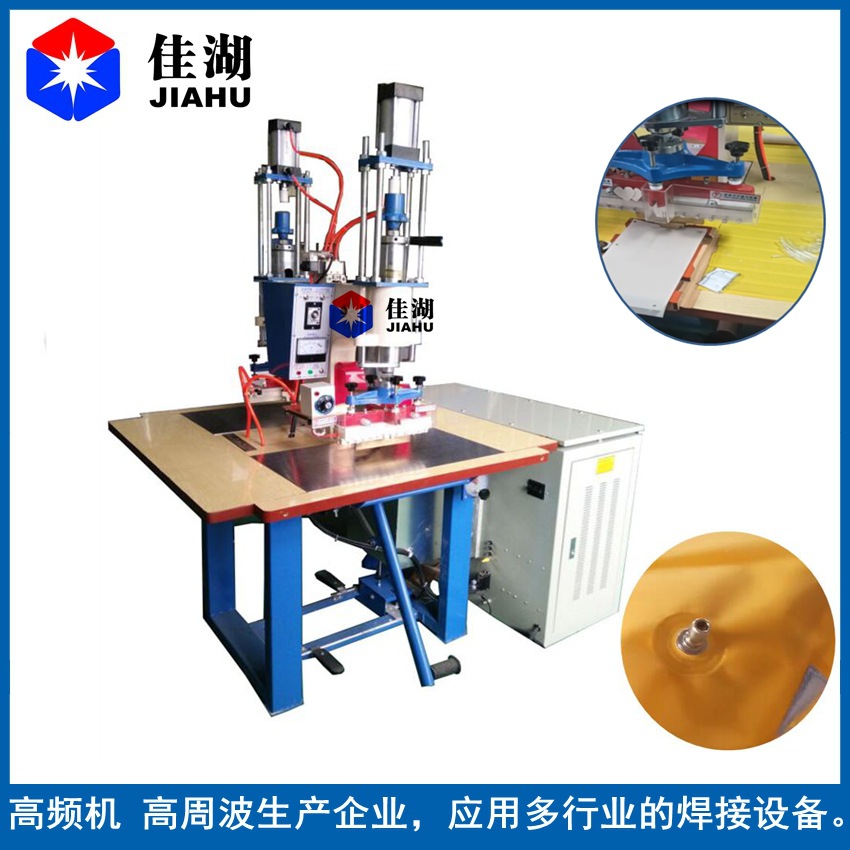 氣嘴熱合機適用于PVC、PU、TPU含有20%以上PVC軟硬塑膠熔接,難對位產品熔接熱合如各類服飾,制服反光帶,救生圈/救生衣氣嘴熱合、漂流艇、漂流船、浮排、窗簾、浴簾、充氣水池、游泳池、充氣床墊、玉石床墊、充氣床墊、吹氣沙發、線束、水囊、古錢幣、紀念幣封套熱合、PVC保護膜熱合、PVC束線焊接、雨衣、雨傘、電線燙片線束、PVC袋子、凝膠降溫坐墊、冰晶眼罩、充氣氣嘴熔接、卡套熱合、PVC泡泡貼、防水鞋套、天花軟膜、禮品袋、籃球壓花、相薄、相冊、名片內頁的熔接、鼠標墊、鏡盒焊接壓花等; 氣嘴高頻熱合機#雙頭氣動式高頻機見圖